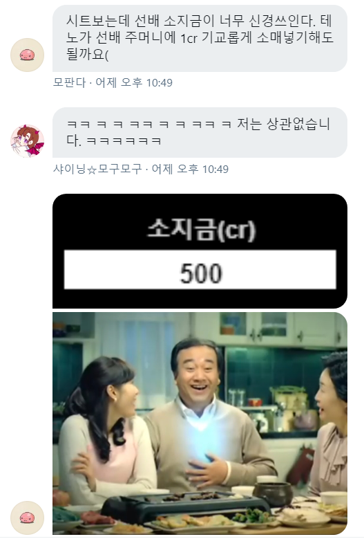 라홍: (아무튼 시트에 반영했습니다.ㅋㅋㅋㅋㅋㅋㅋㅋㅋ)